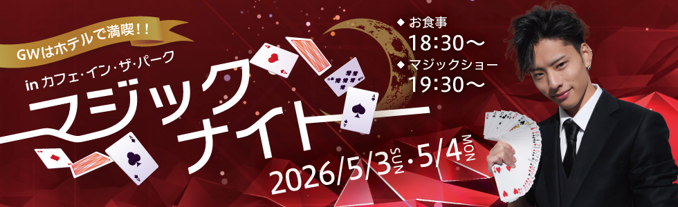 ディナーとプロマジシャンの本格マジックを楽しむ特別な夜。ステージとテーブルで味わう、贅沢なひととき。