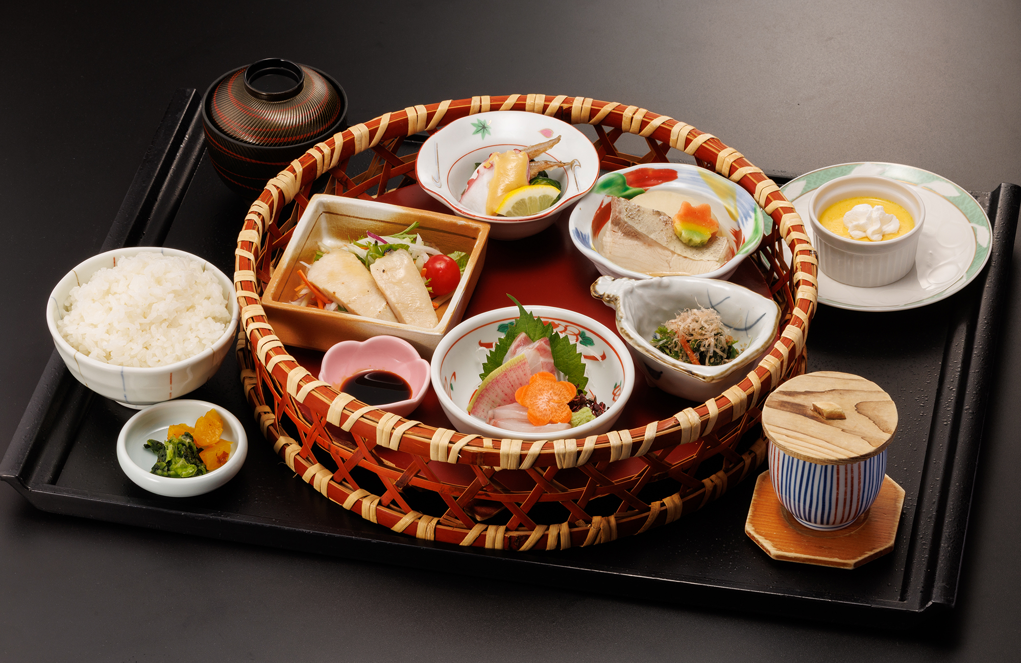 茶碗蒸し / ご飯 / 香の物 / 味噌汁 / 水菓子