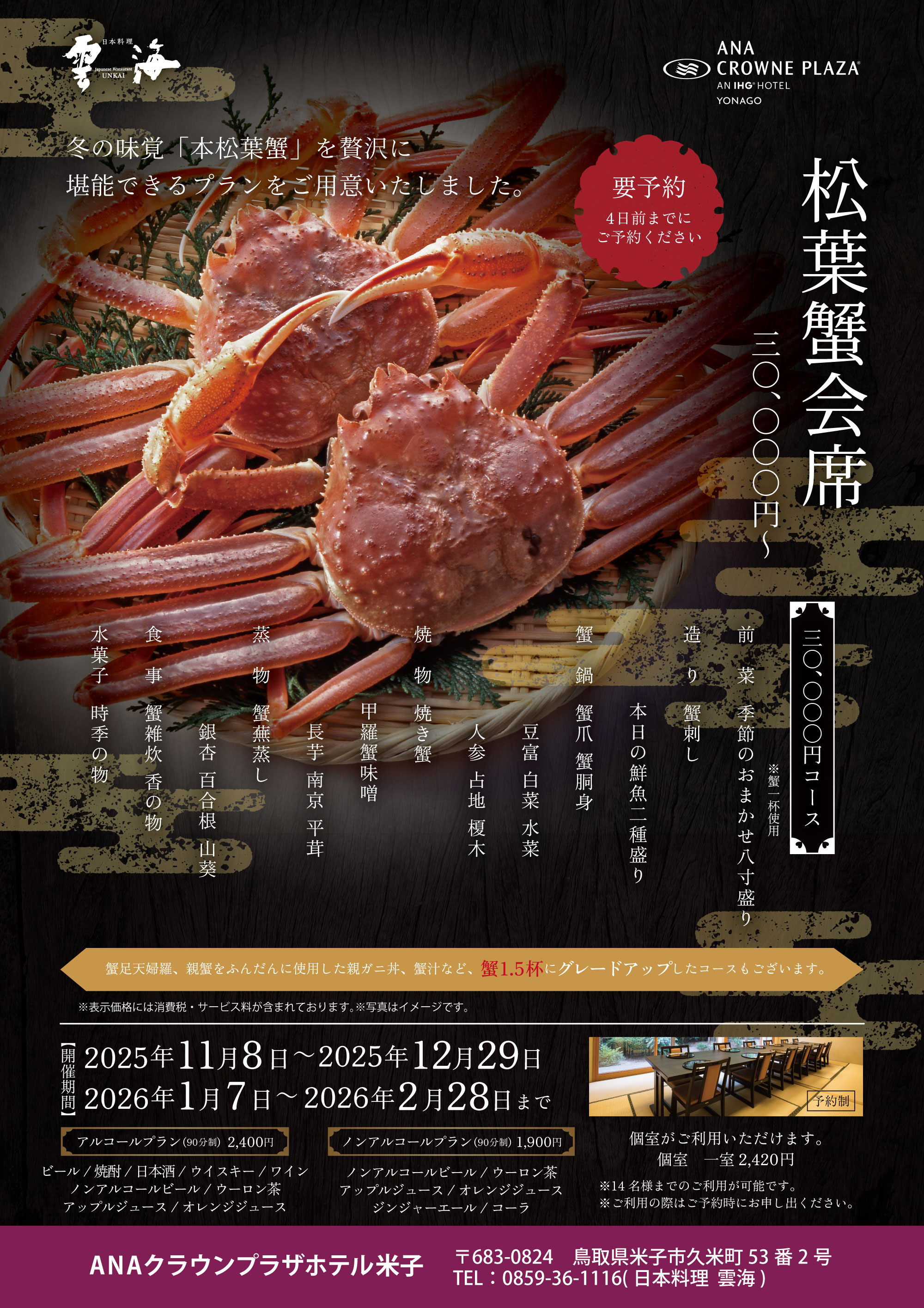 【期間限定】松葉蟹会席(要予約 3日前)