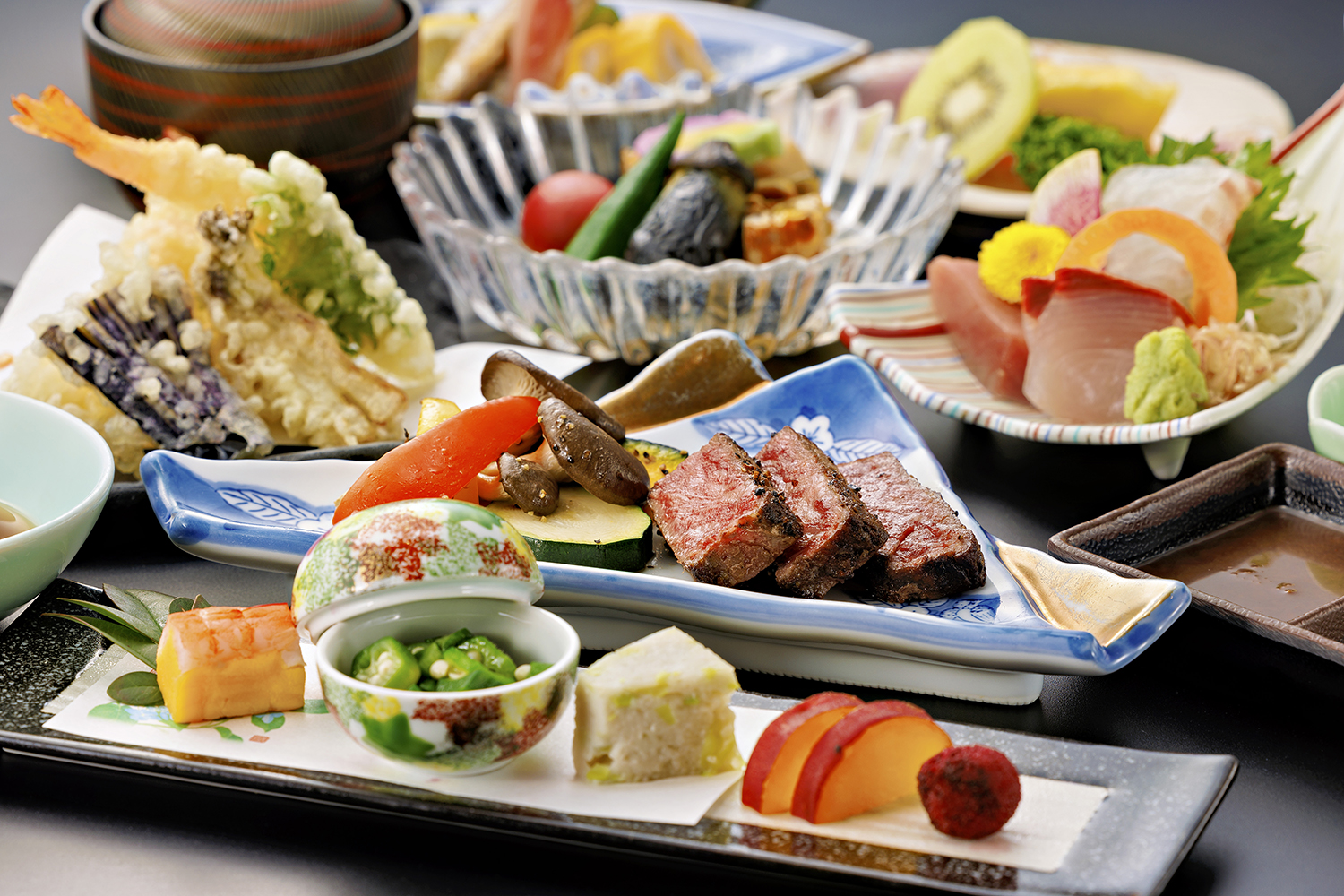会席 ¥6,600 ¥8,800 ¥11,000 お子様膳 ¥3,025 陰膳 ¥1,650 ※表示価格はサービス料込・消費税込です。 ※写真は会席8,800円のイメージです。